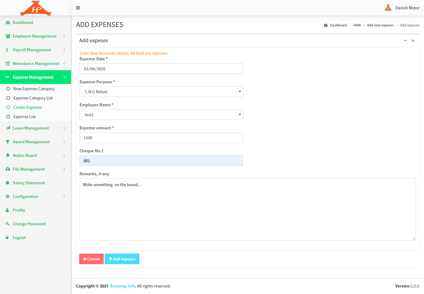 Expense Setup