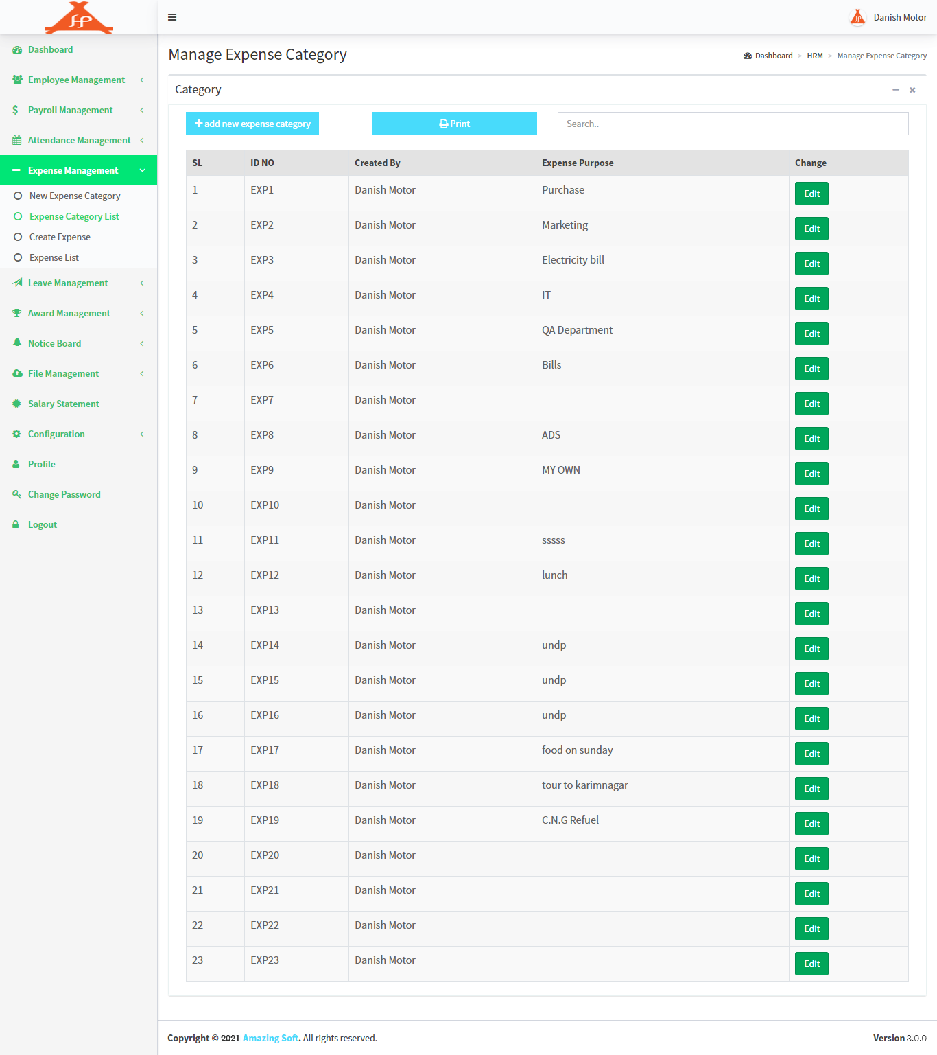Expense Category List